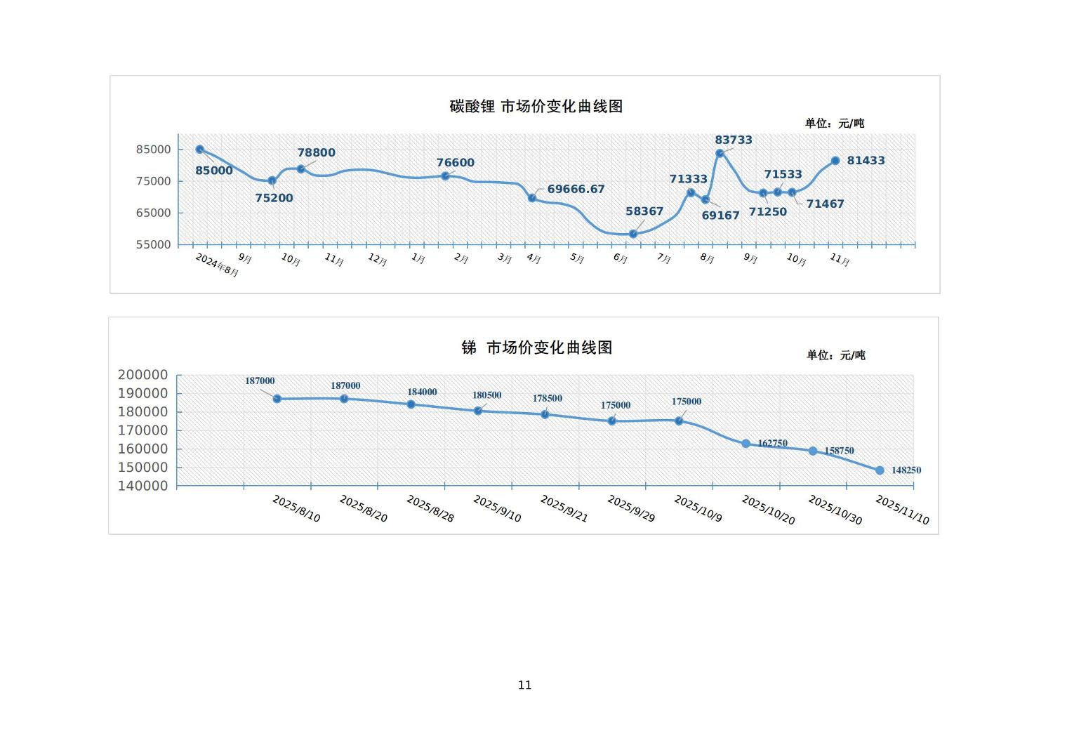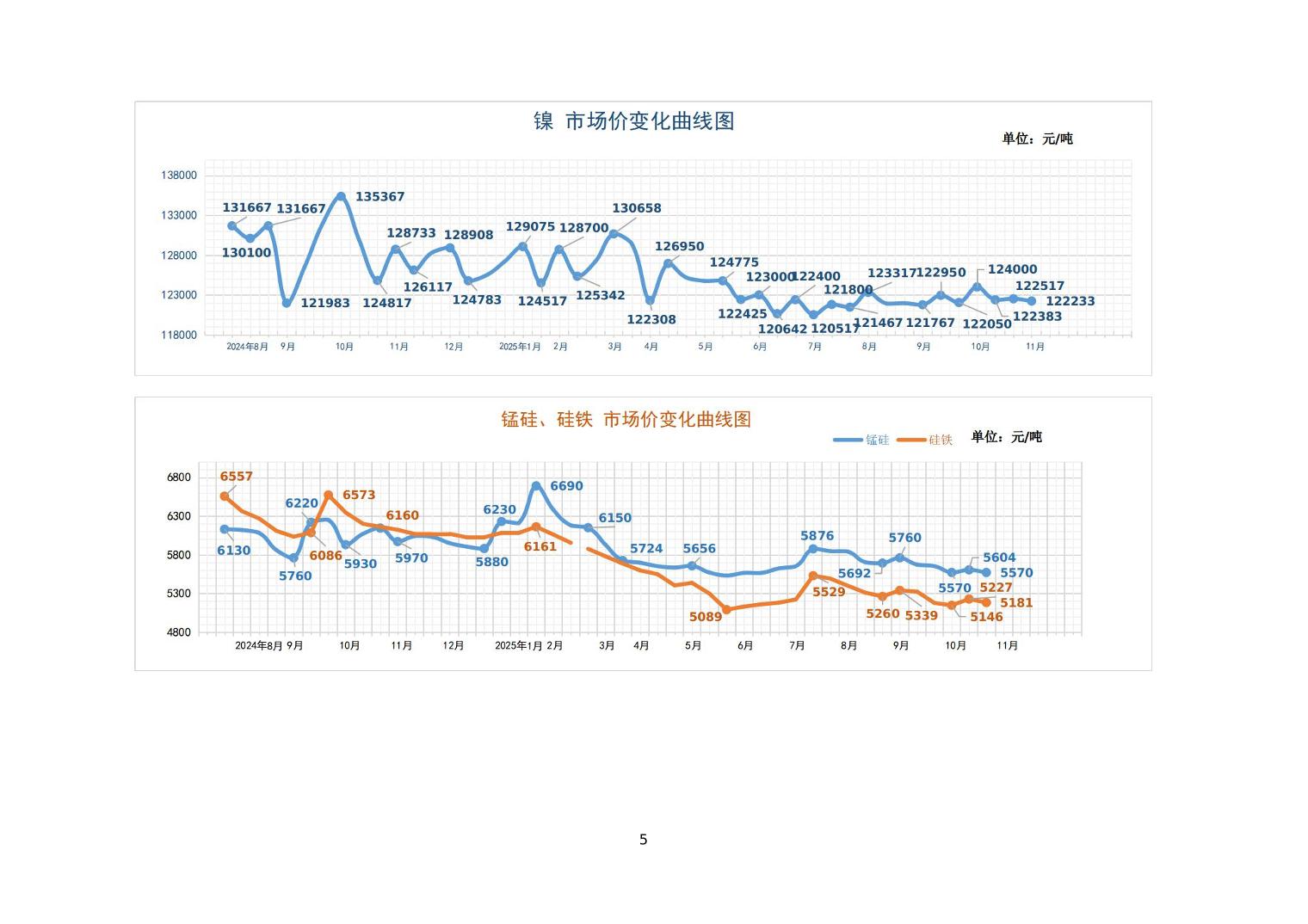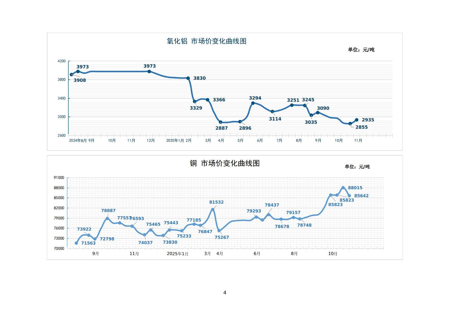 2025年11月上旬21种主要工业品市场现货价格变动情况
