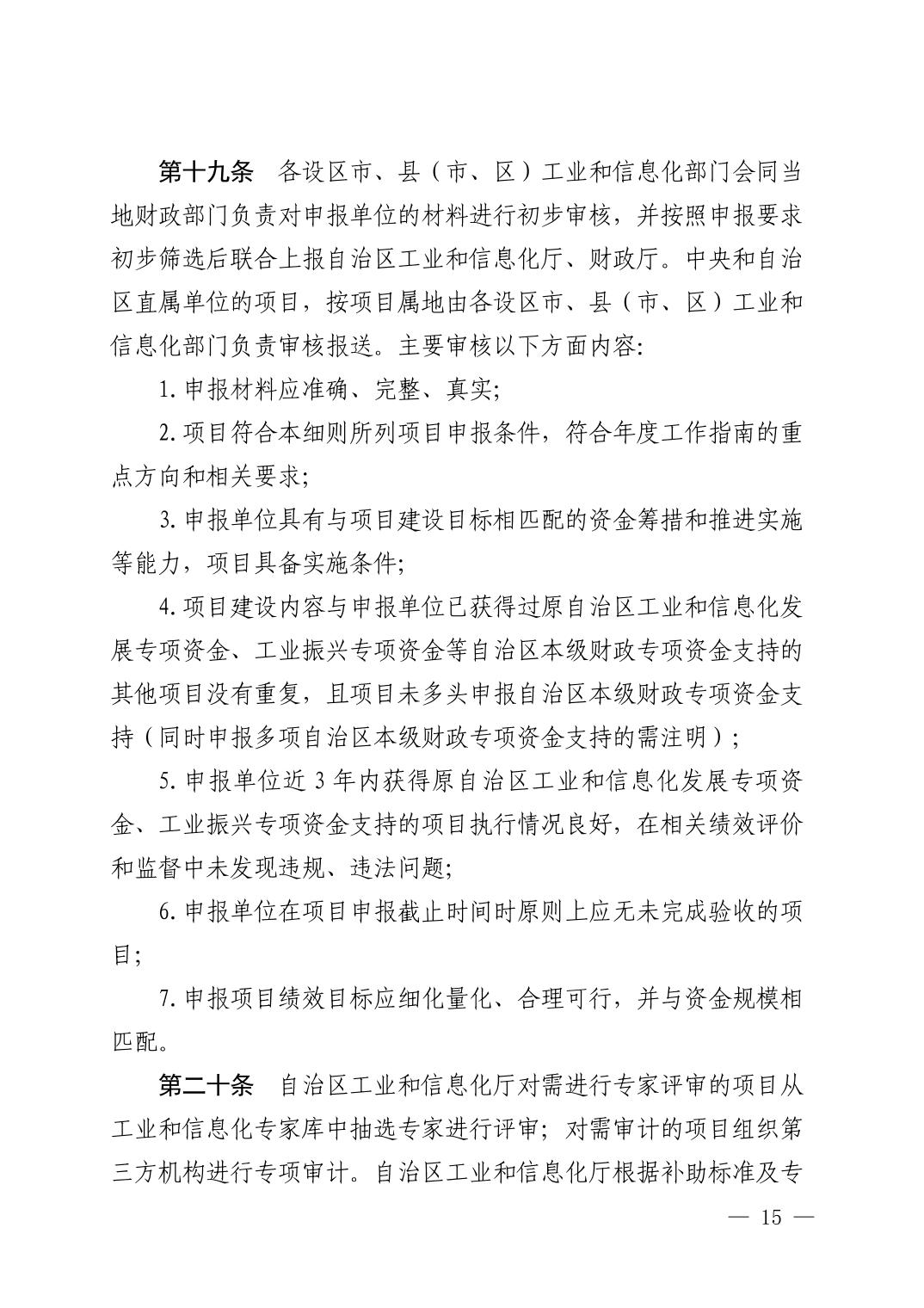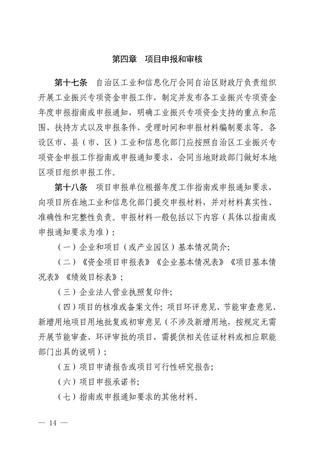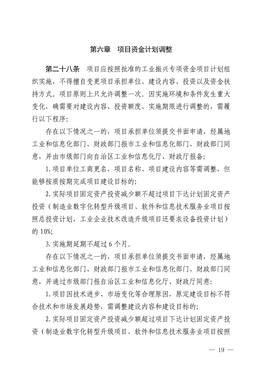 为进一步加强和规范自治区统筹支持工业振兴专项资金的管理,提高资金使用效益,根据《广西壮族自治区统筹支持工业振兴专项资金管理办法》(桂工信规范〔2024〕13号)精神,我们制定了《广西壮族自治区统筹支持工业振兴专项资金管理实施细则》。现印发你们,请认真贯彻执行。